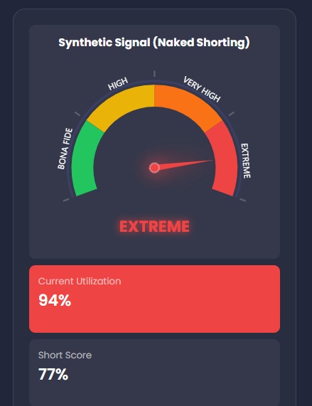 The EZPZTrading Synthetic Share Percentage metric represents an attempt to make these effects legible. By integrating official short interest data with FTD records, Reg SHO threshold history, options flow signals, ETF mechanics, lending utilization, and rehypothecation proxies, the model constructs a composite picture of structural pressure that no single data source could provide alone.